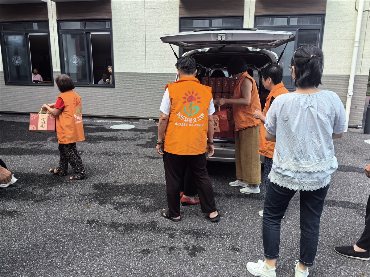 上午辰巳时分,欢乐慈爱义工团党支部的党员代表和义工代表们,带着全团义工和爱心人士的一片情意和中秋月饼等节日慰问品,特地赶往柯桥南部山区稽东敬老院,为老年长辈们送上了节日的慰问与问侯!老人们手拿节日礼品,都十分开心,嘴里不停地声声道谢!
