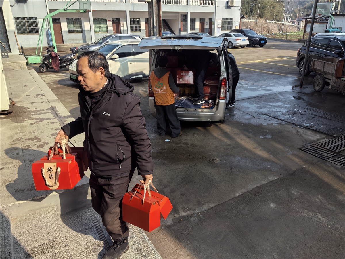 近晌时分,欢乐慈爱义工团的党员代表和义工代表们一起,带着党和政府、爱心人士、全团10000余名爱心义工的同嘱托与关爱,又为深居稽东山村的高龄老人和困难家庭送去了一份春节前的关爱!送去了大米、食油、礼包、福联、寿面等慰问品,到场的父老长辈们笑颜逐开!很是开心!